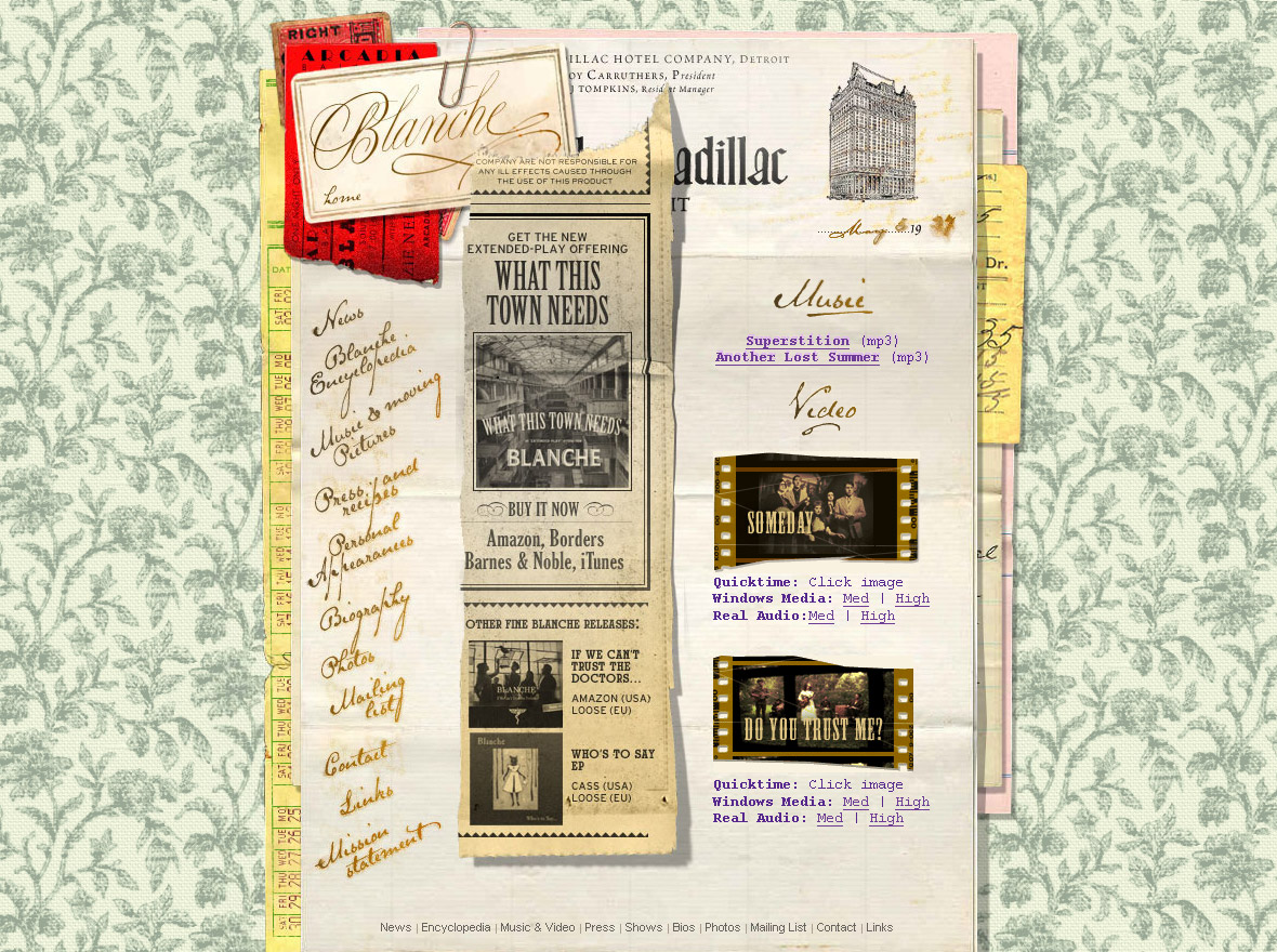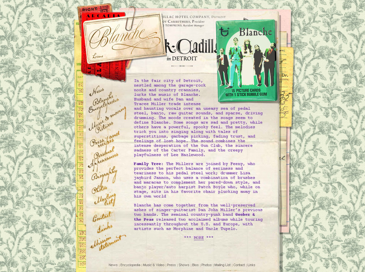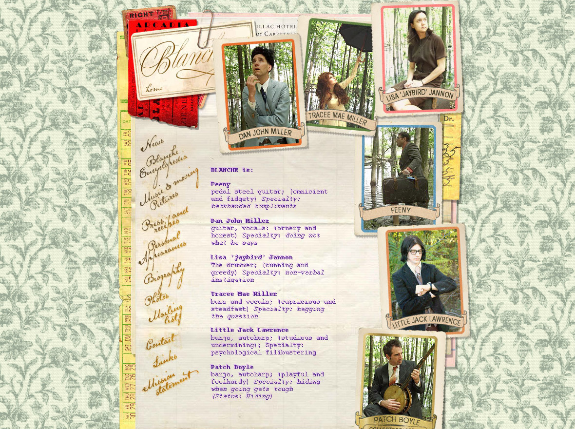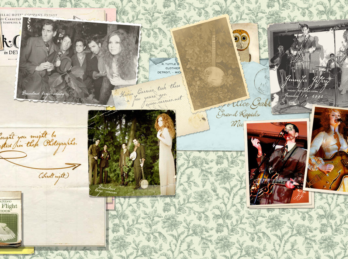 Over the years I designed the packaging for two full length albums, two EPs and their website. When I finished the website, I considered it the best thing I’d done. Conceptually it was the most narrative. Inspired by the characters the band adopted as well as the story in Bobby Bare’s Detroit City, the story of a man who moved the Detroit in its heyday to seek his dreams and ends up leading a very different life than the one he tells his family back home.