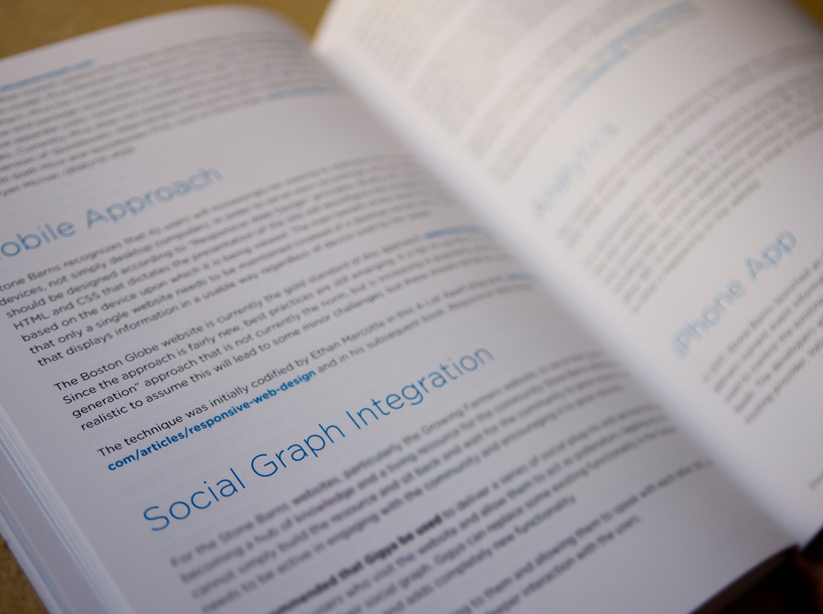 It is safe to say that the project involved extensive investigation, strategic vision, and detailed tactical direction. Activities included stakeholder interviews, content strategy, technological assessment, internal productivity assessment, workload issues, extensive information architectural planning, and the creation of detailed wireframes and documentation providing Stone Barns with a detailed blueprint for future efforts.